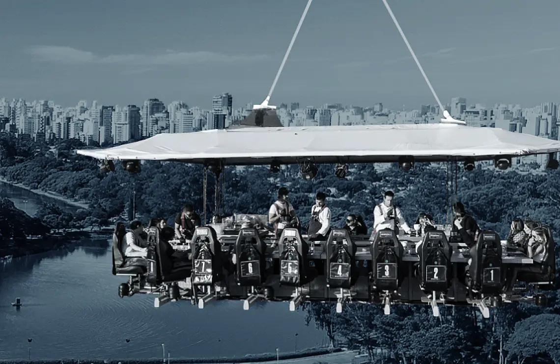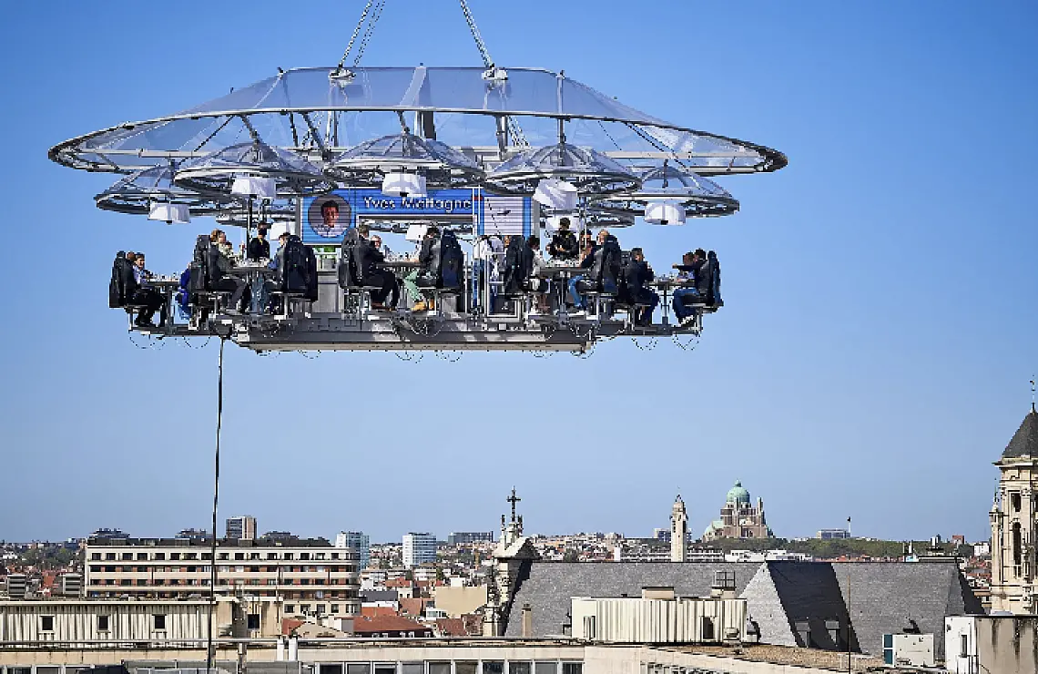One of the most unique and exciting dining experiences on the planet, Dinner in the Sky, is an open air restaurant, suspended from a crane high above the city streets below.
